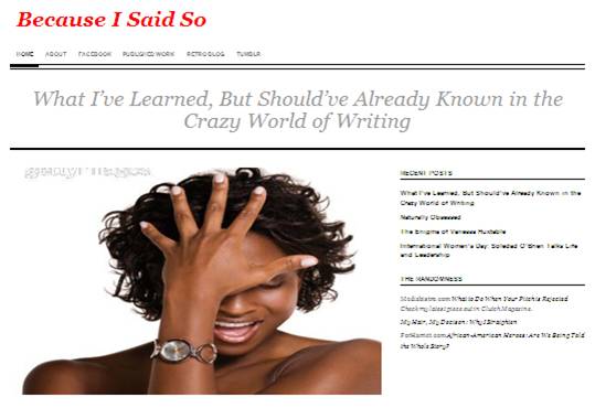 Because I Said So is more than a “lifestyle” blog. It’s a look at the the world through my eyes. From my daily life and journey to becoming a regularly published writer to current events and culture
