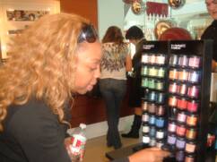 Trust the layout of the store. They couple complimenting colors together to make the shopping experience easier for you. Remember to have fun, and try color combos that inspire the wardrobe you already own. You'll be more likely to actually wear the products you purchase and be sure to take another Diva along to get a second opinion!